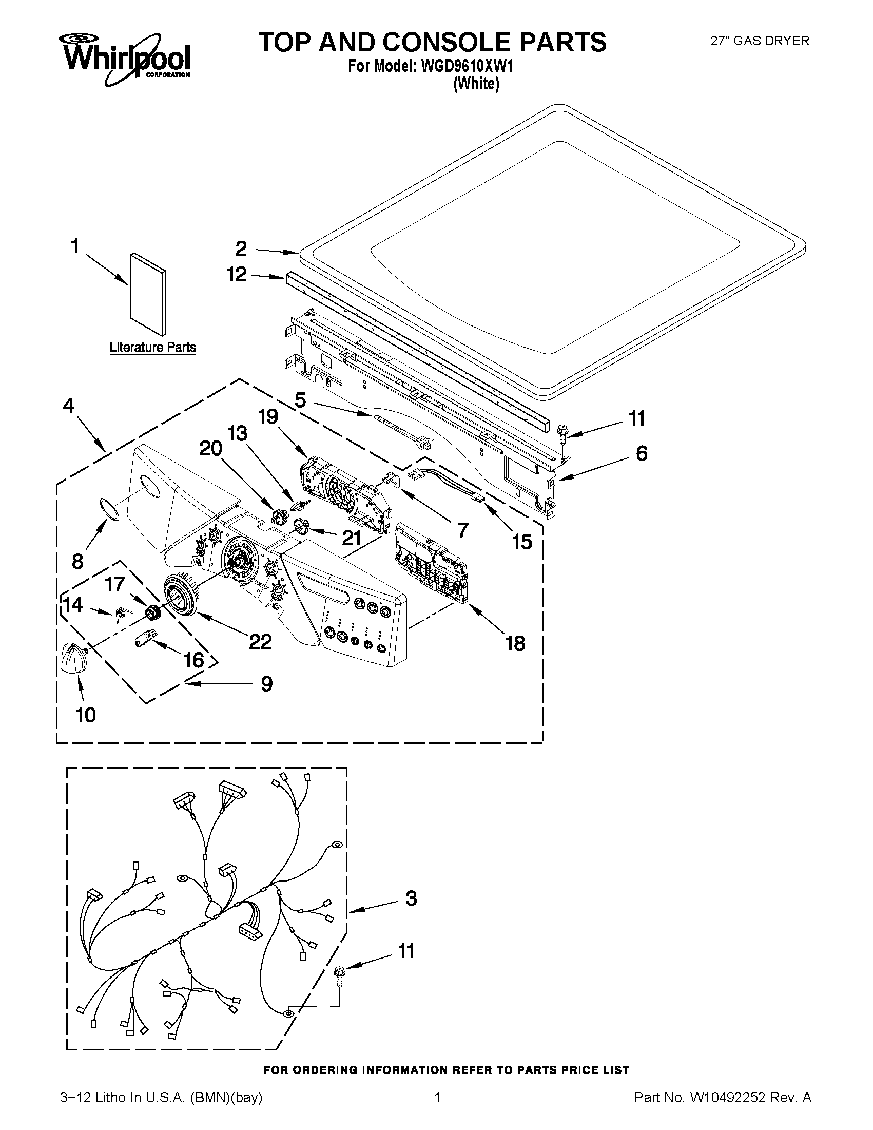 WGD9610XW1 01 – TOP AND CONSOLE PARTS