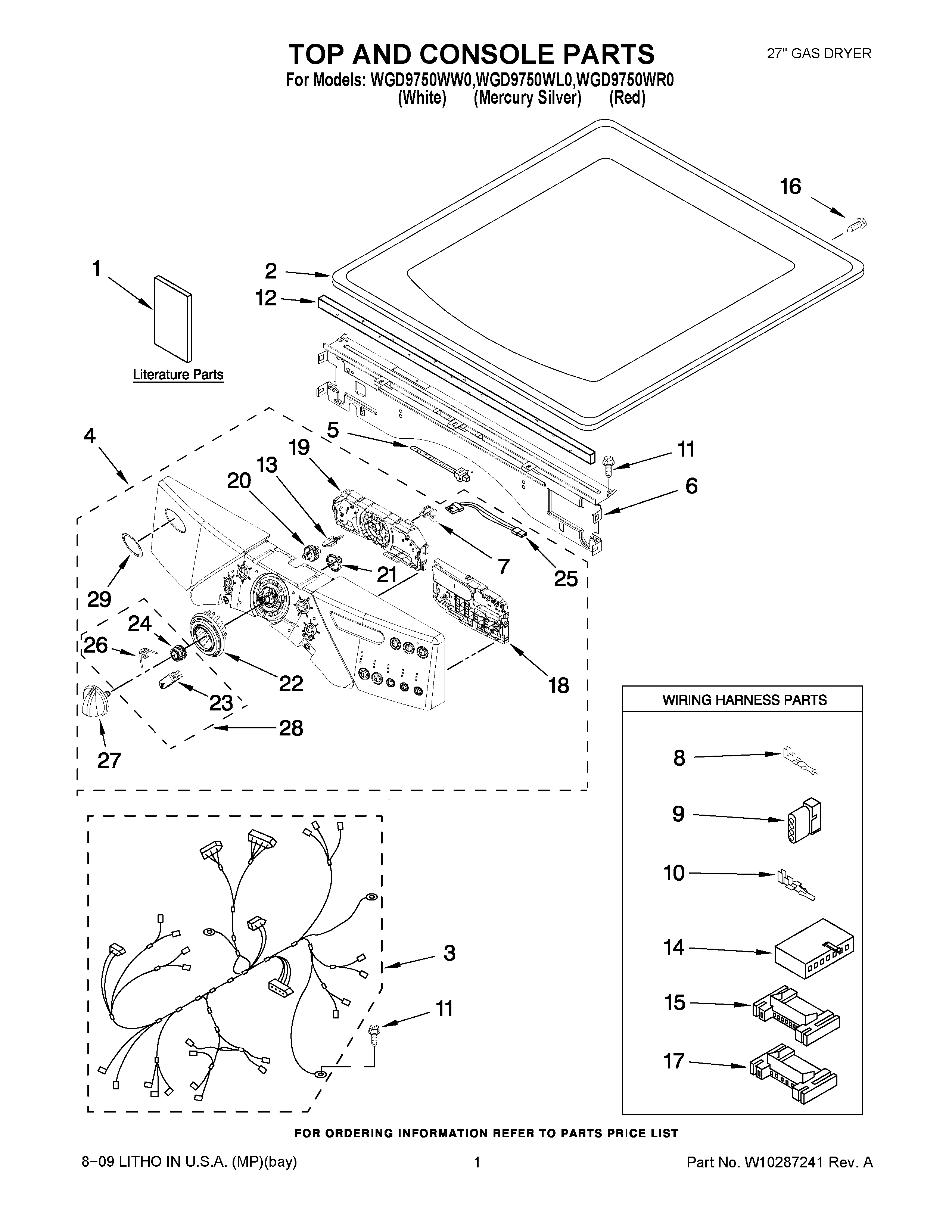 WGD9750WW0 01 – TOP AND CONSOLE PARTS
