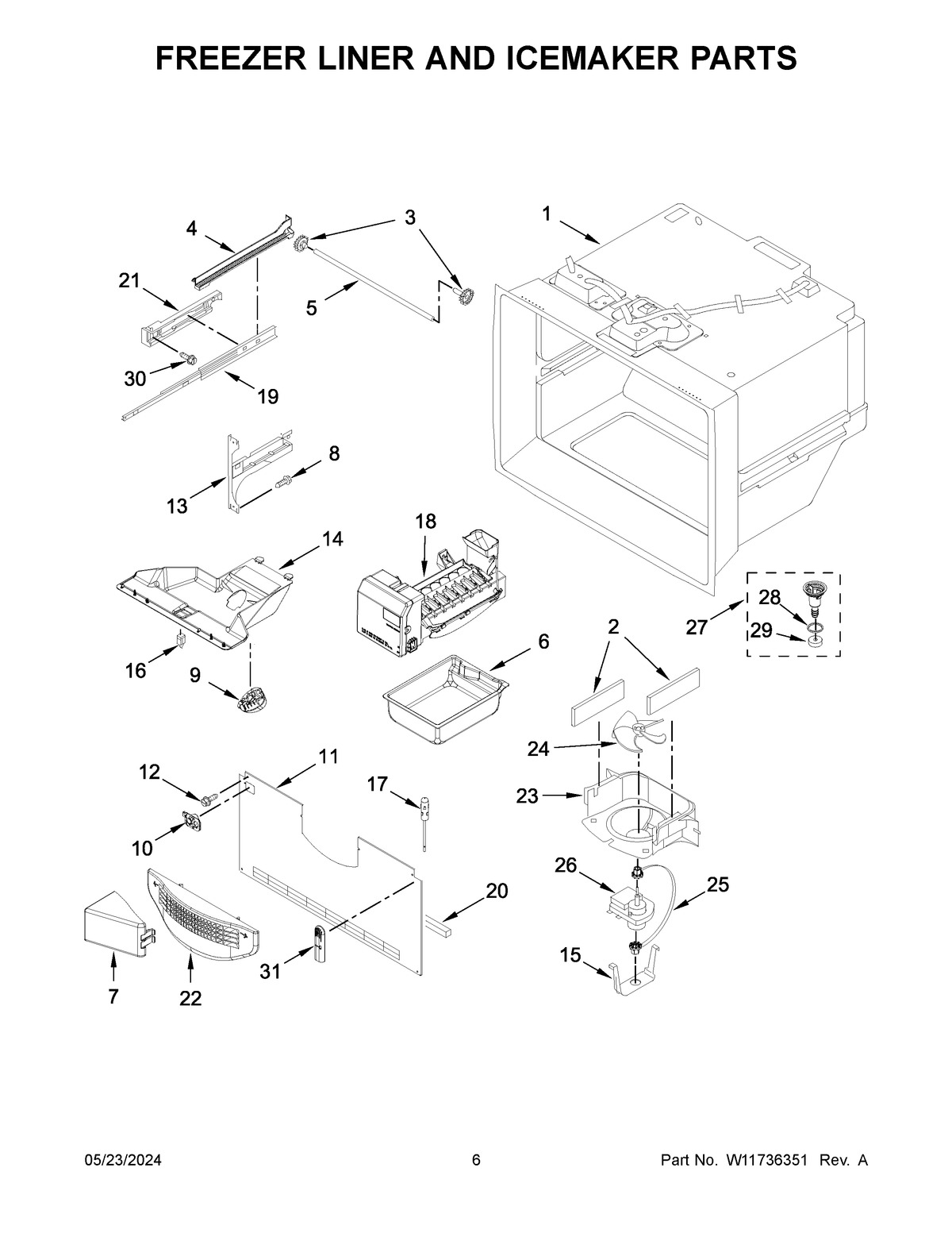 WRF540CWHB10 04 – FREEZER LINER AND ICEMAKER PARTS