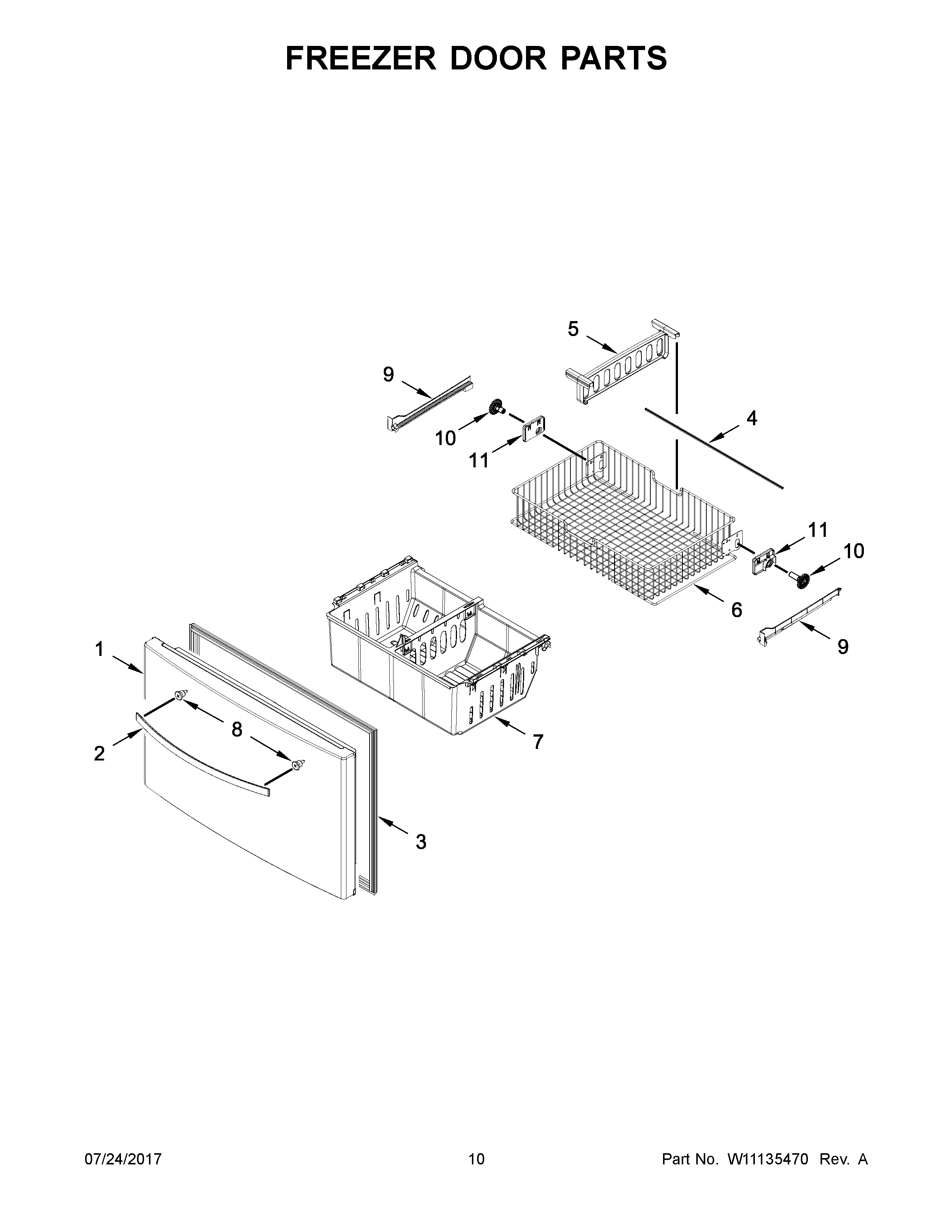 W11218042 Whirlpool Refrigerator Freezer Basket