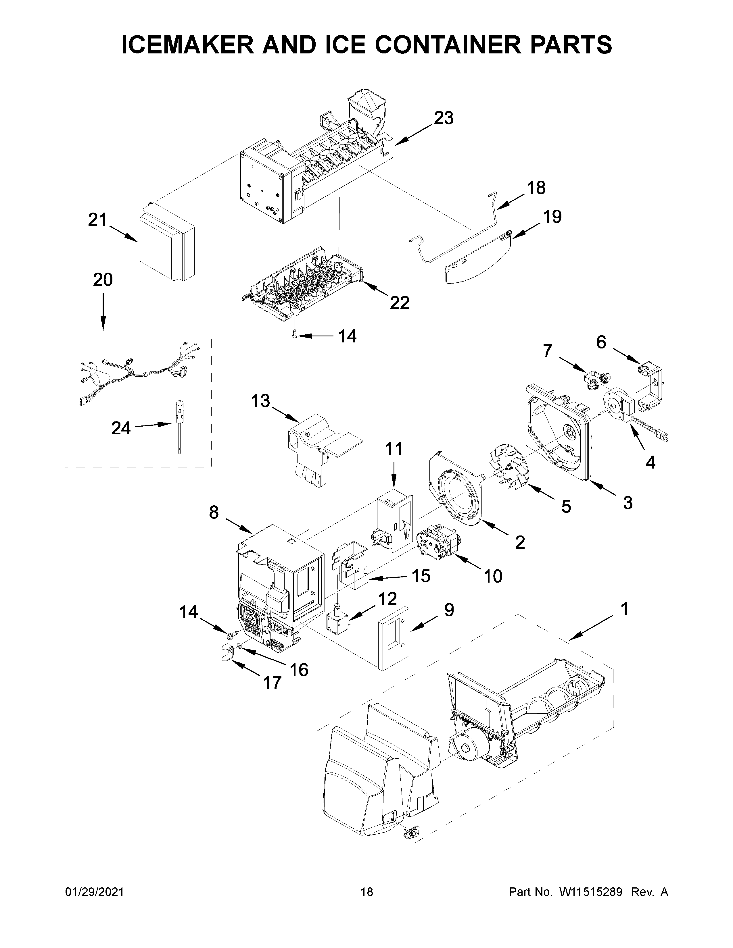 WRF555SDHV04 10 – ICEMAKER AND ICE CONTAINER PARTS