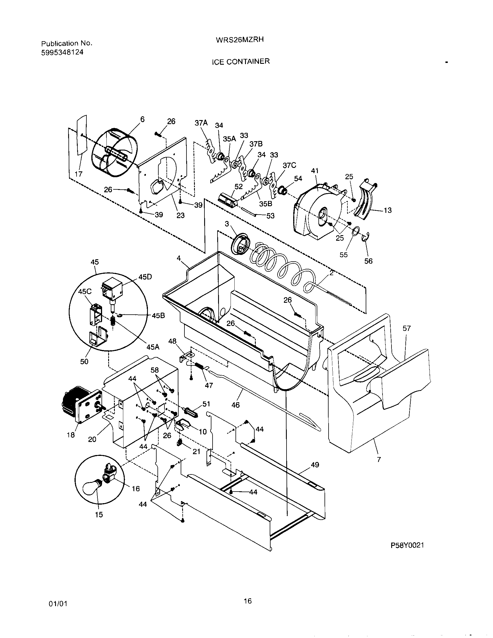241716101 Frigidaire Refrigerator Ice Auger