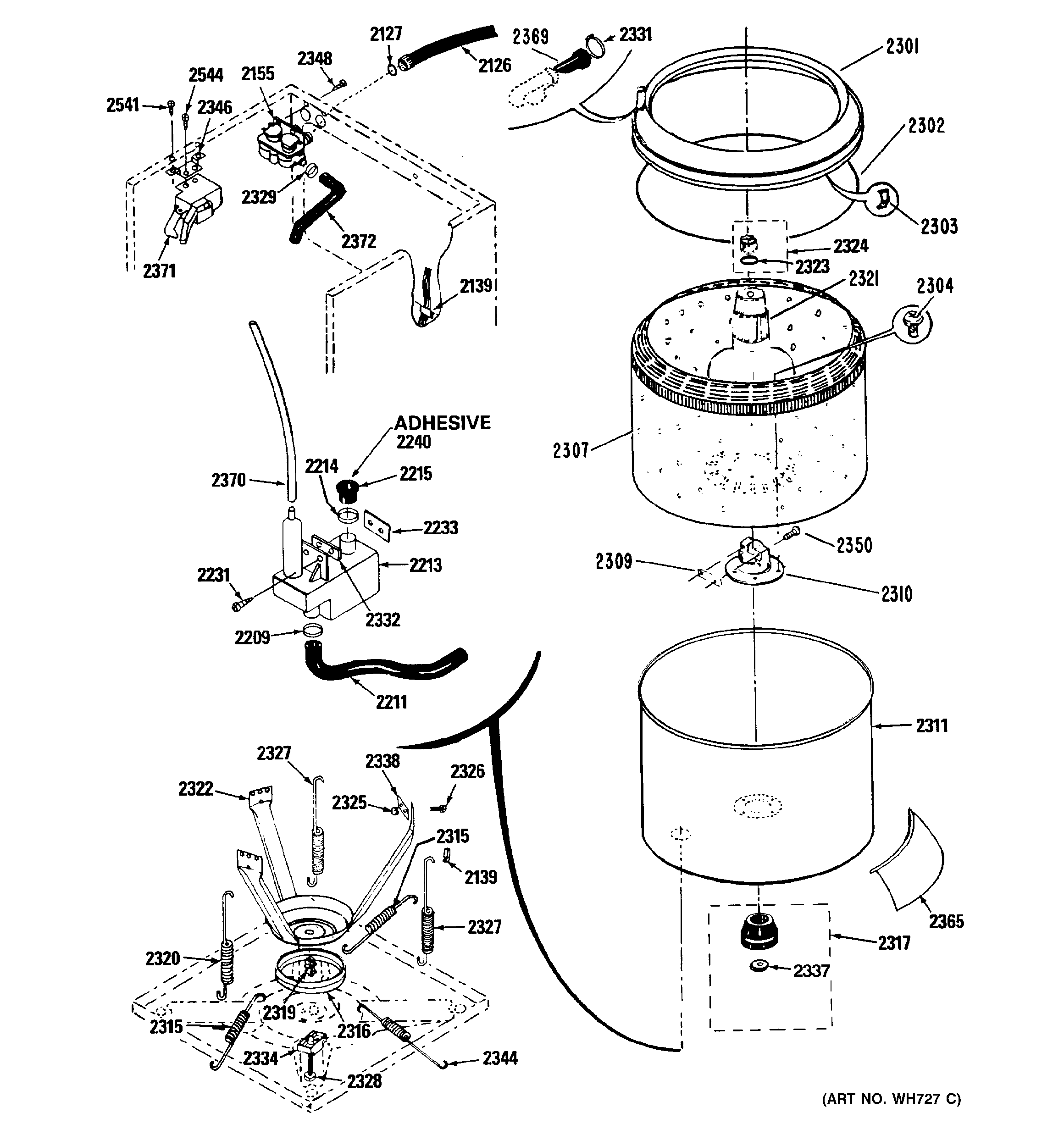 WSM2000HBW TUB, WATER VALVE & LID SWITCH