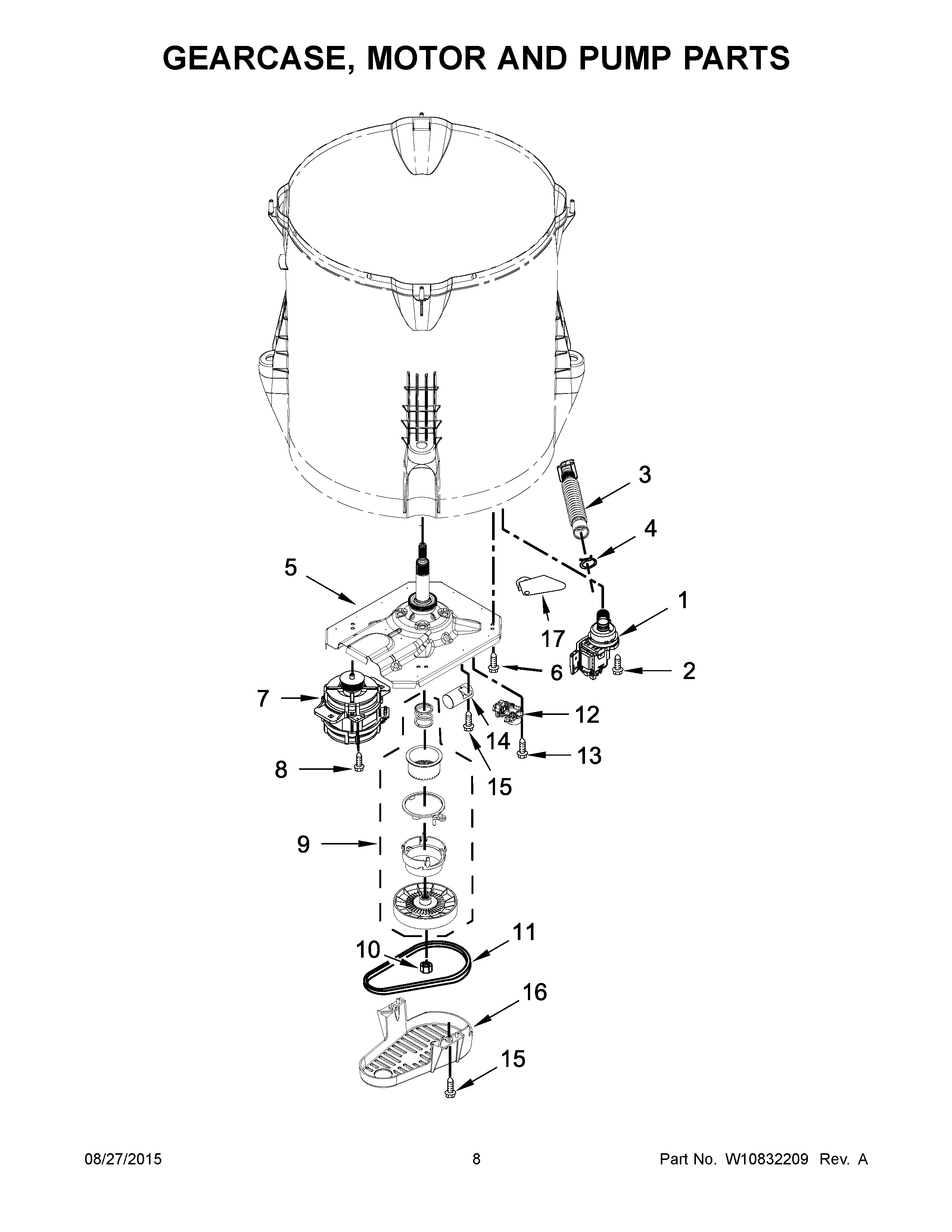 WTW5000DW1 05 – GEARCASE, MOTOR AND PUMP PARTS