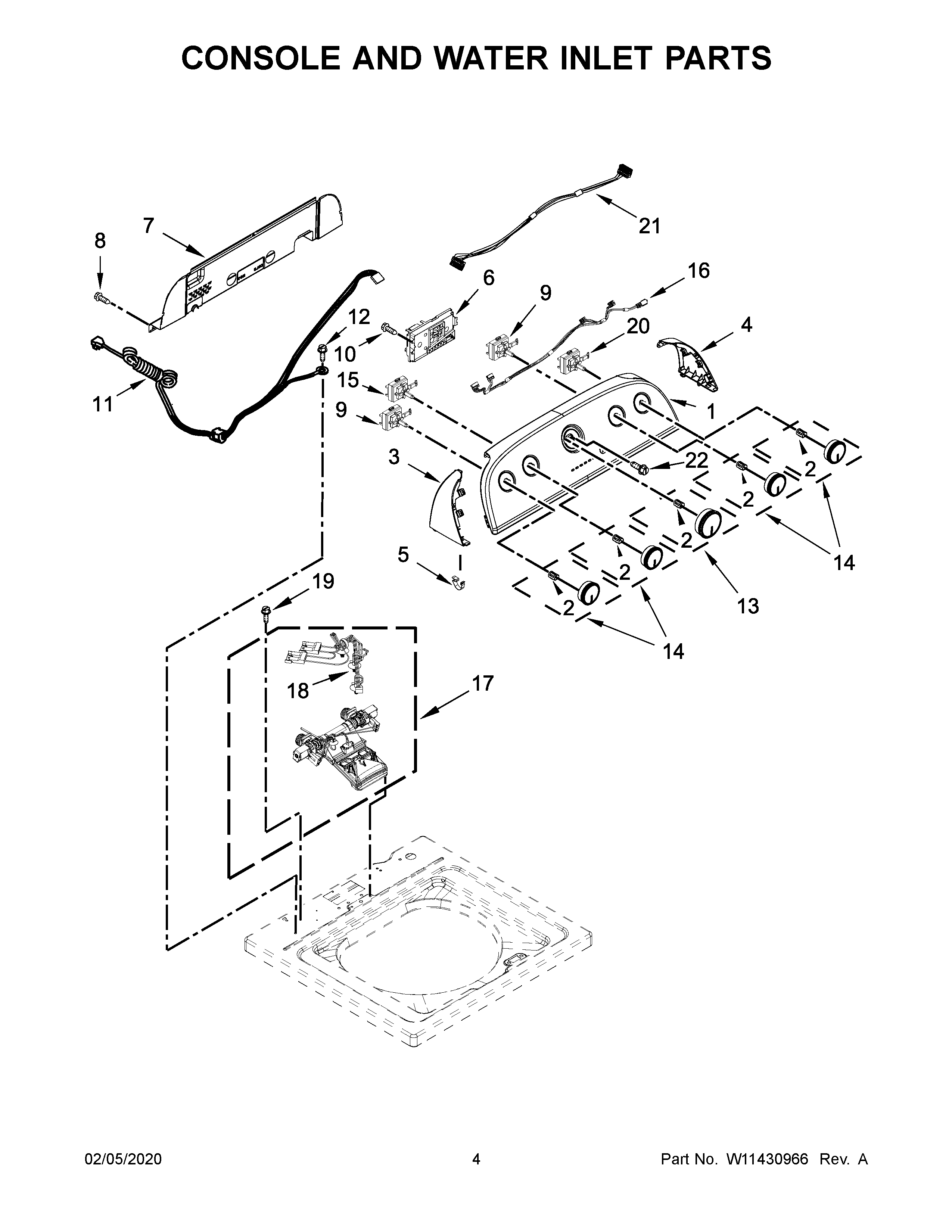 WTW5005KW0 03 – CONSOLE AND WATER INLET PARTS