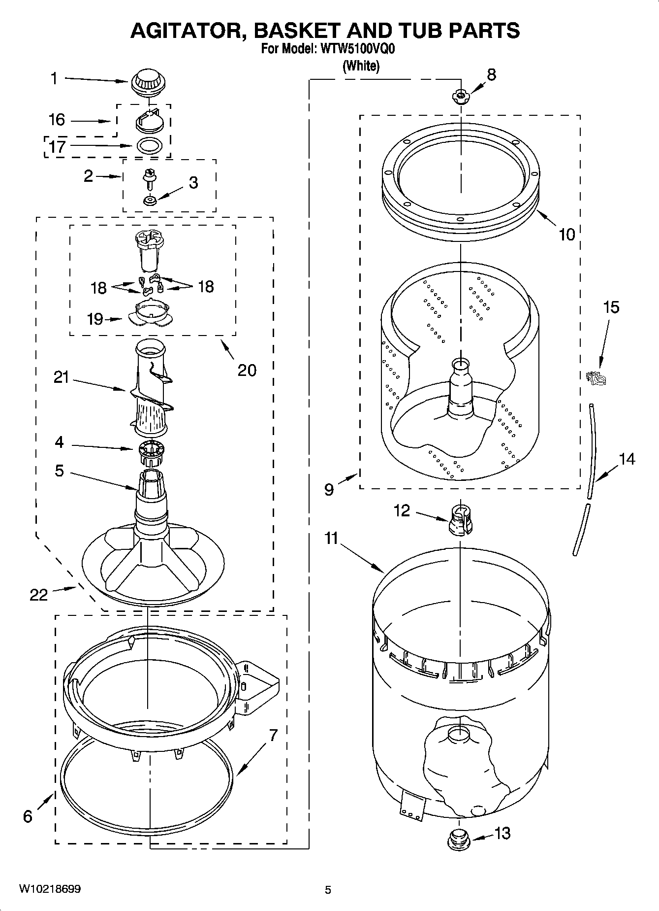 WTW5100VQ0 03 – AGITATOR, BASKET AND TUB PARTS