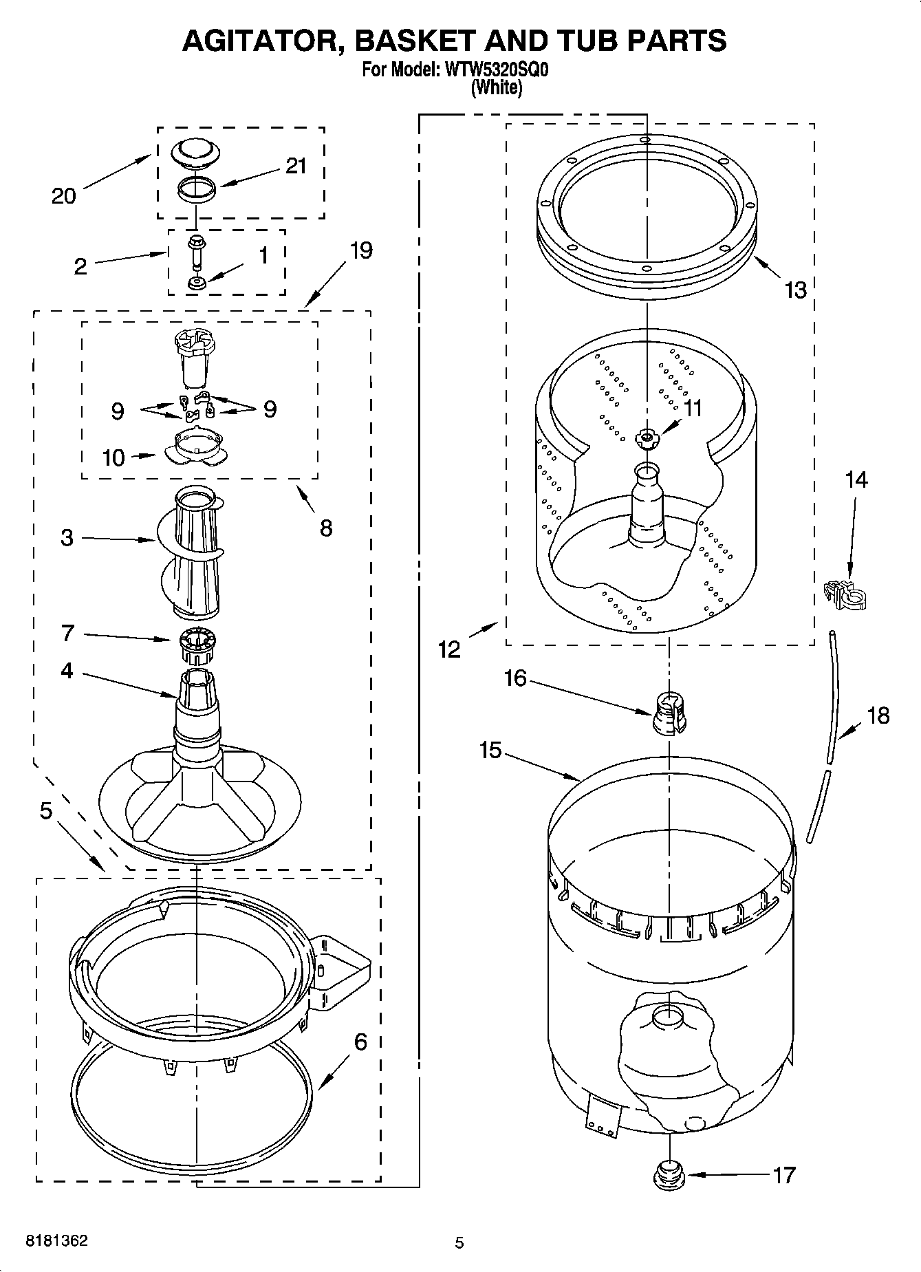 WTW5320SQ0 03 – AGITATOR, BASKET AND TUB PARTS