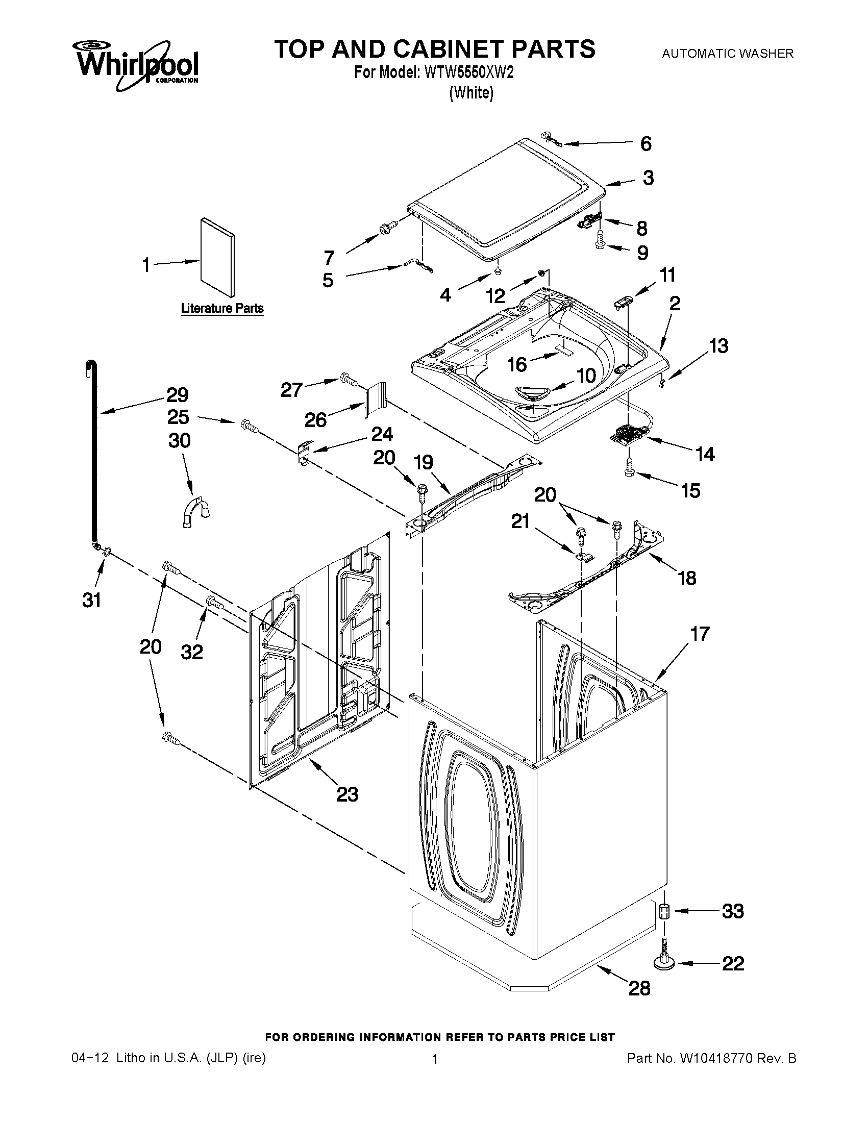 WTW5550XW2 01 – TOP AND CABINET PARTS