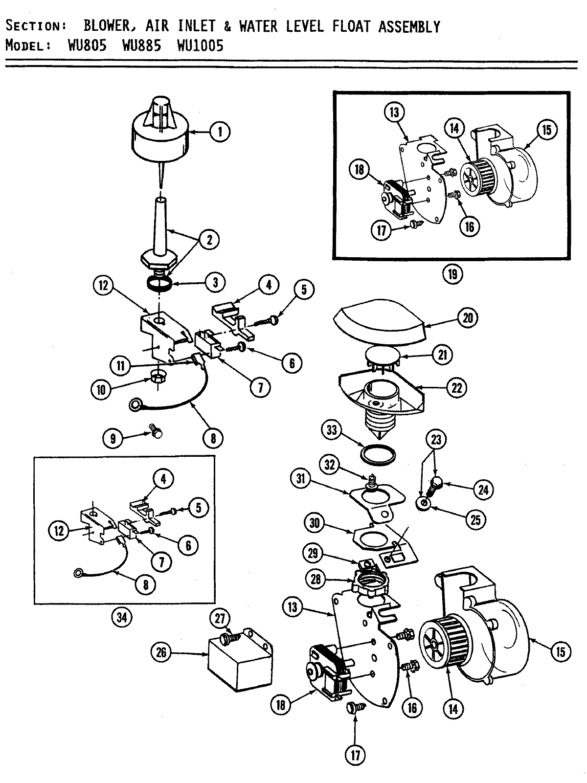 WU1005 01 – BLOWER, AIR INLET & WATER LEVEL FLOAT