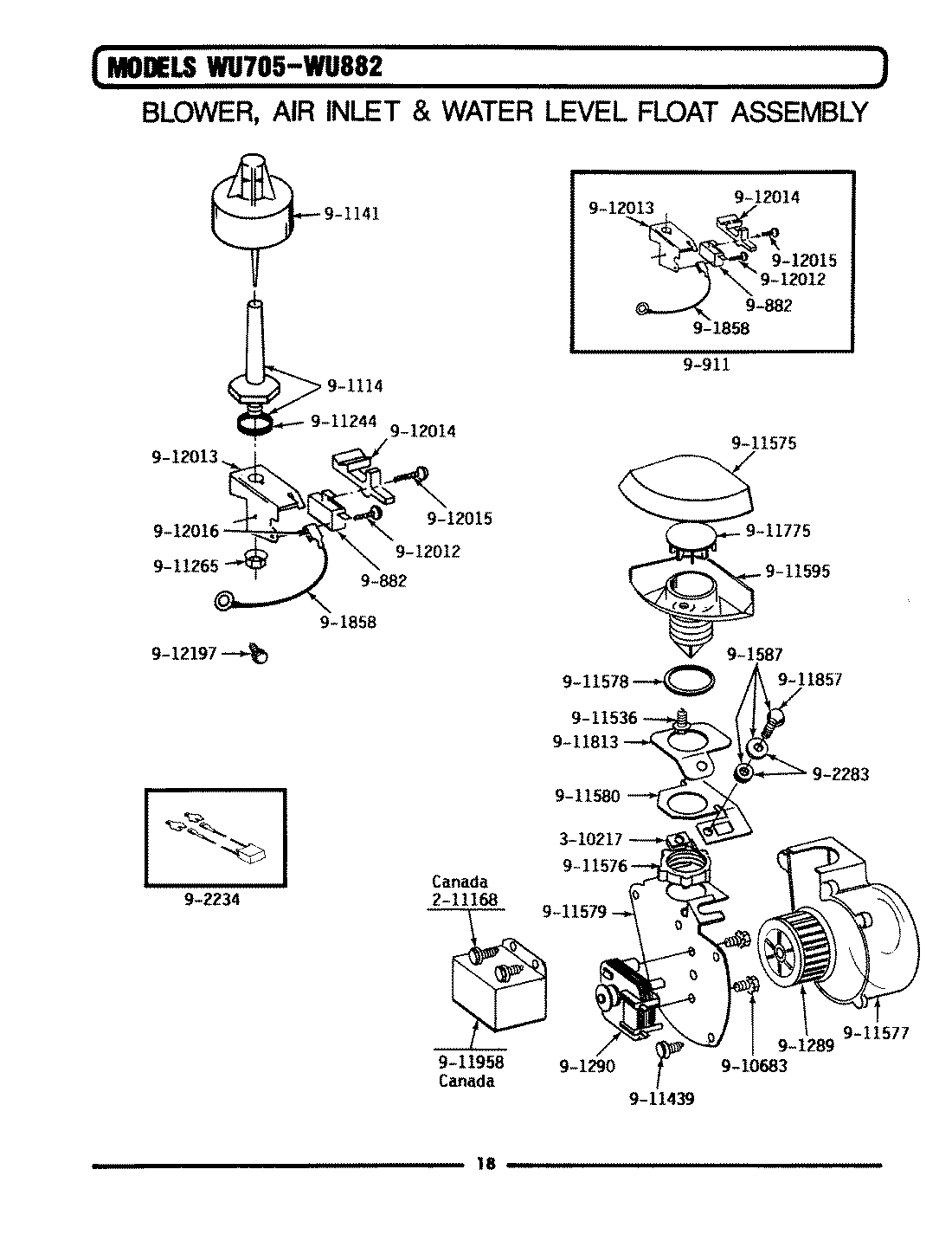 WU705 01 – BLOWER/AIR INLET & WATER LEVEL FLOAT