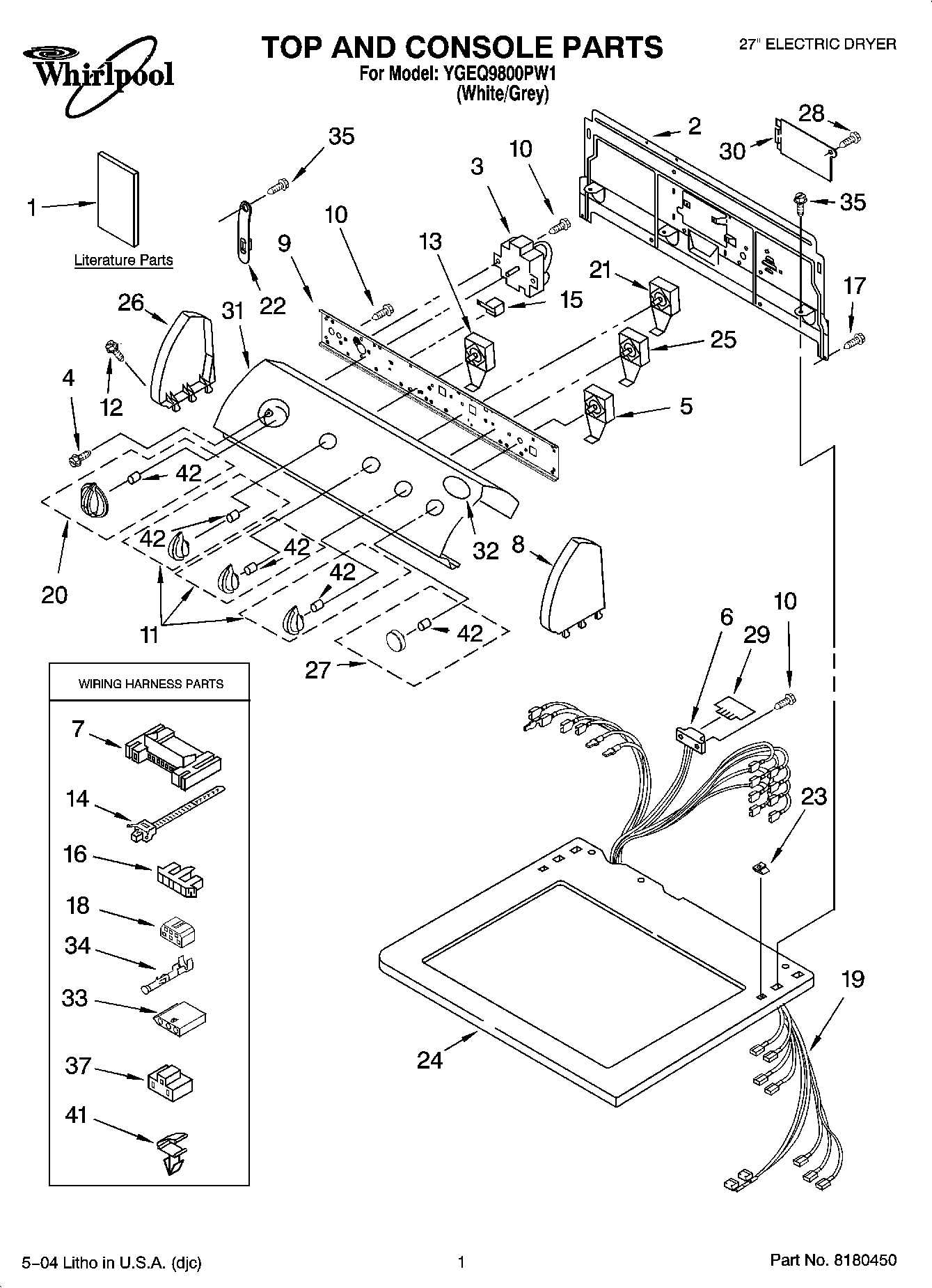 YGEQ9800PW1 01 – TOP AND CONSOLE PARTS