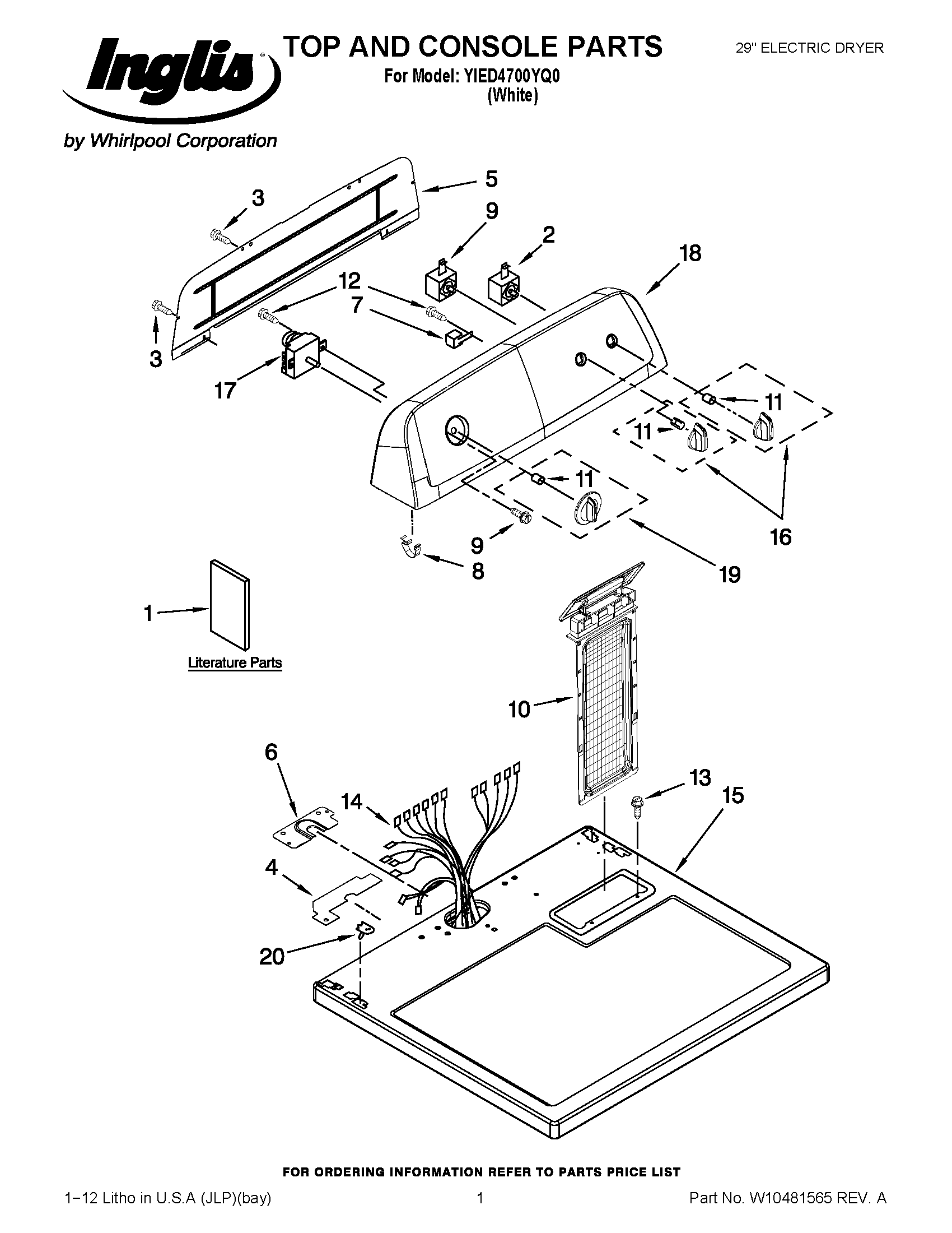 YIED4700YQ0 01 – TOP AND CONSOLE PARTS