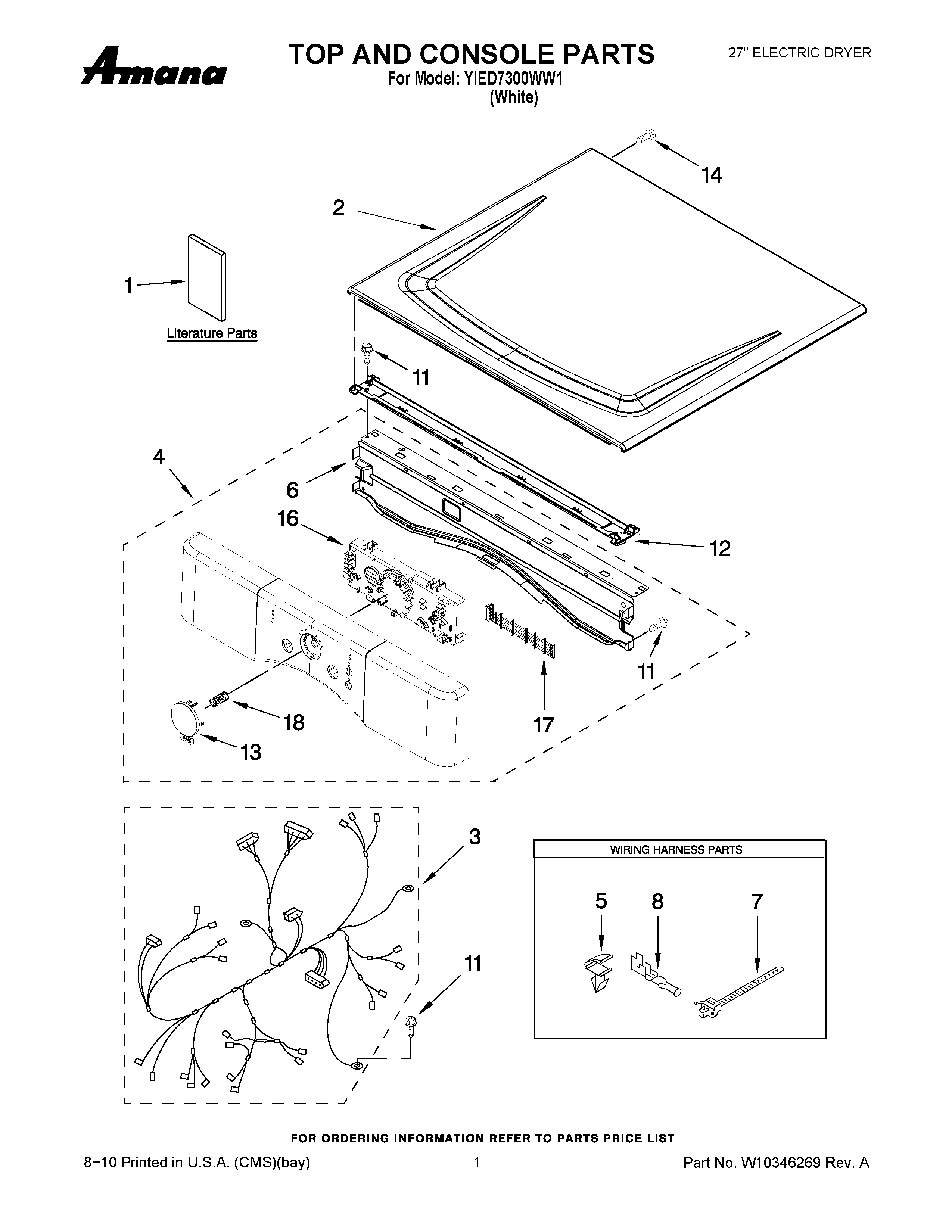 YIED7300WW1 01 – TOP AND CONSOLE PARTS