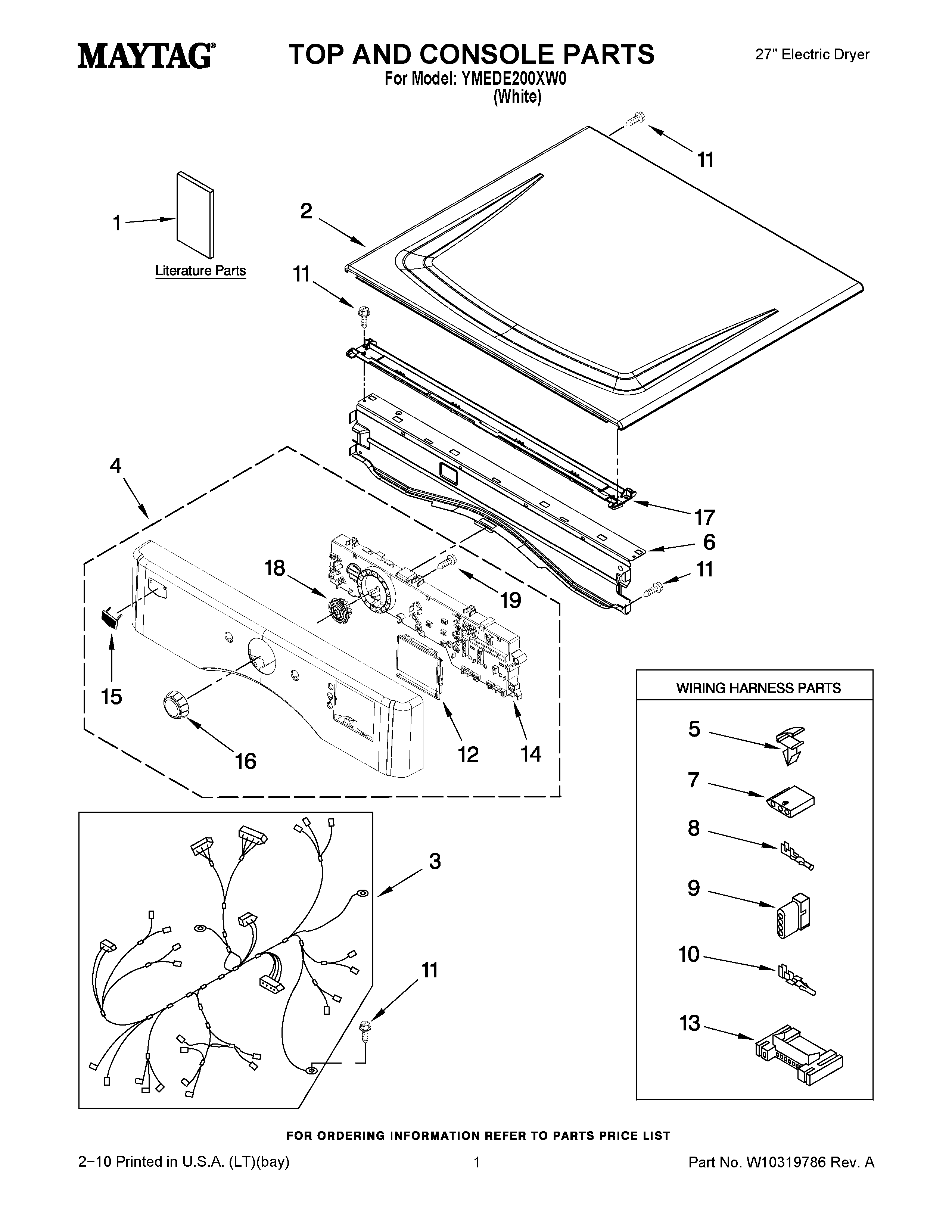 YMEDE200XW0 01 – TOP AND CONSOLE PARTS