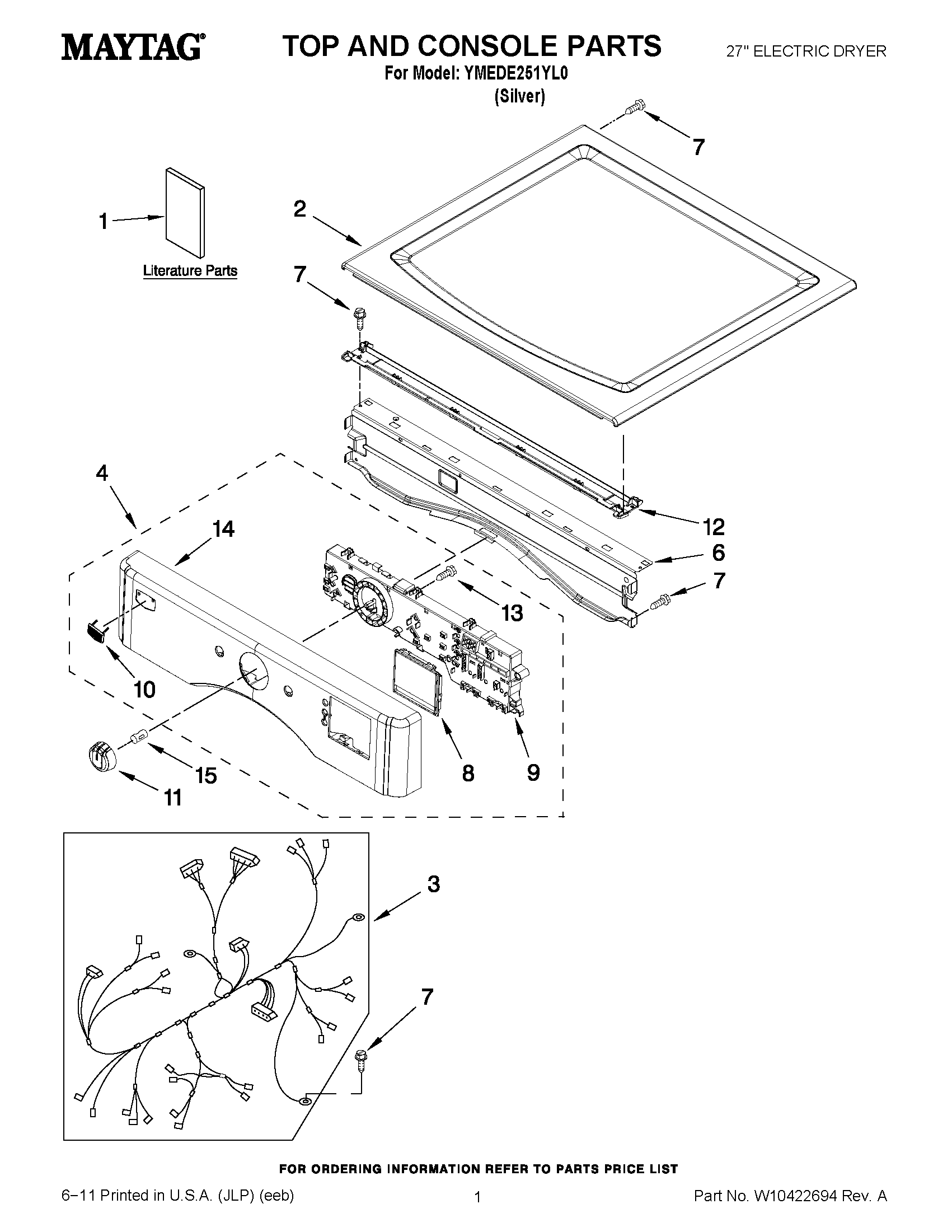 YMEDE251YL0 01 – TOP AND CONSOLE PARTS