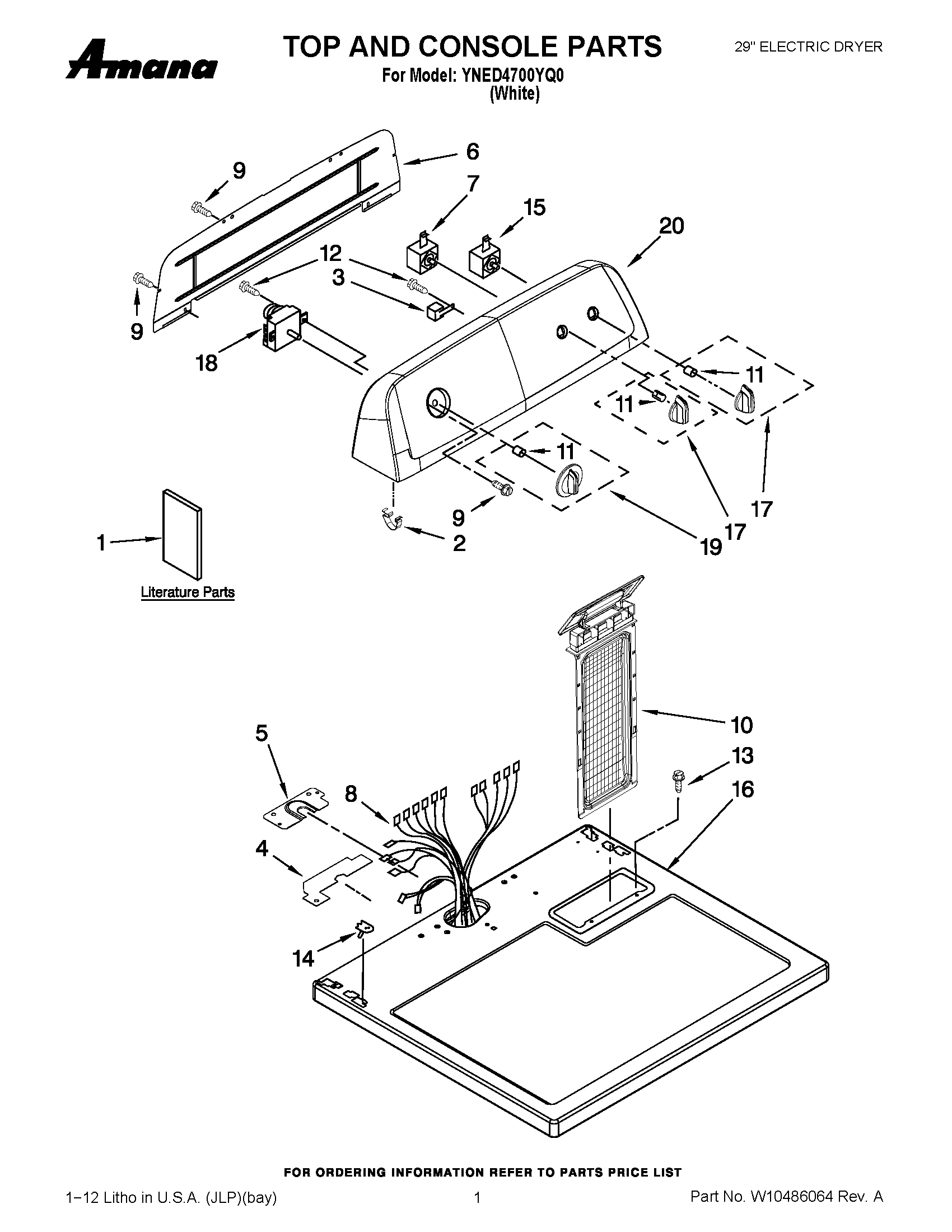 YNED4700YQ0 01 – TOP AND CONSOLE PARTS