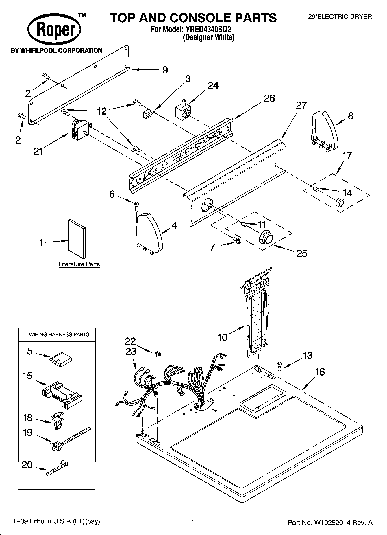 YRED4340SQ2 01 – TOP AND CONSOLE PARTS