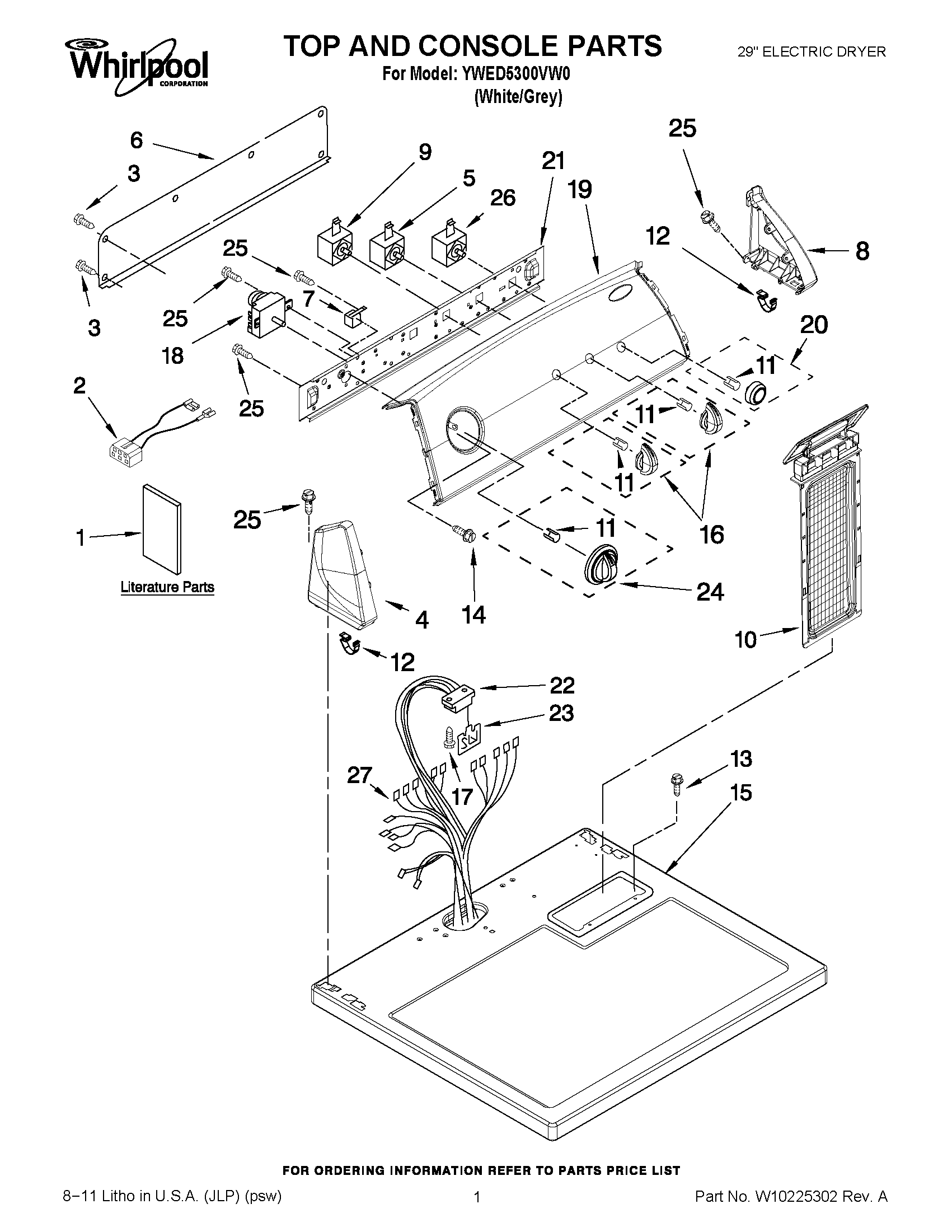 YWED5300VW0 01 – TOP AND CONSOLE PARTS