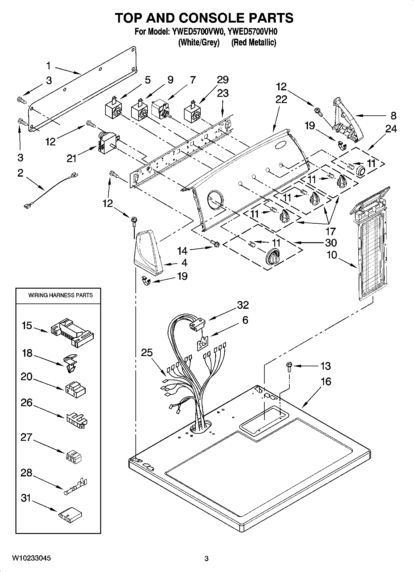 YWED5700VH0 02 – TOP AND CONSOLE PARTS