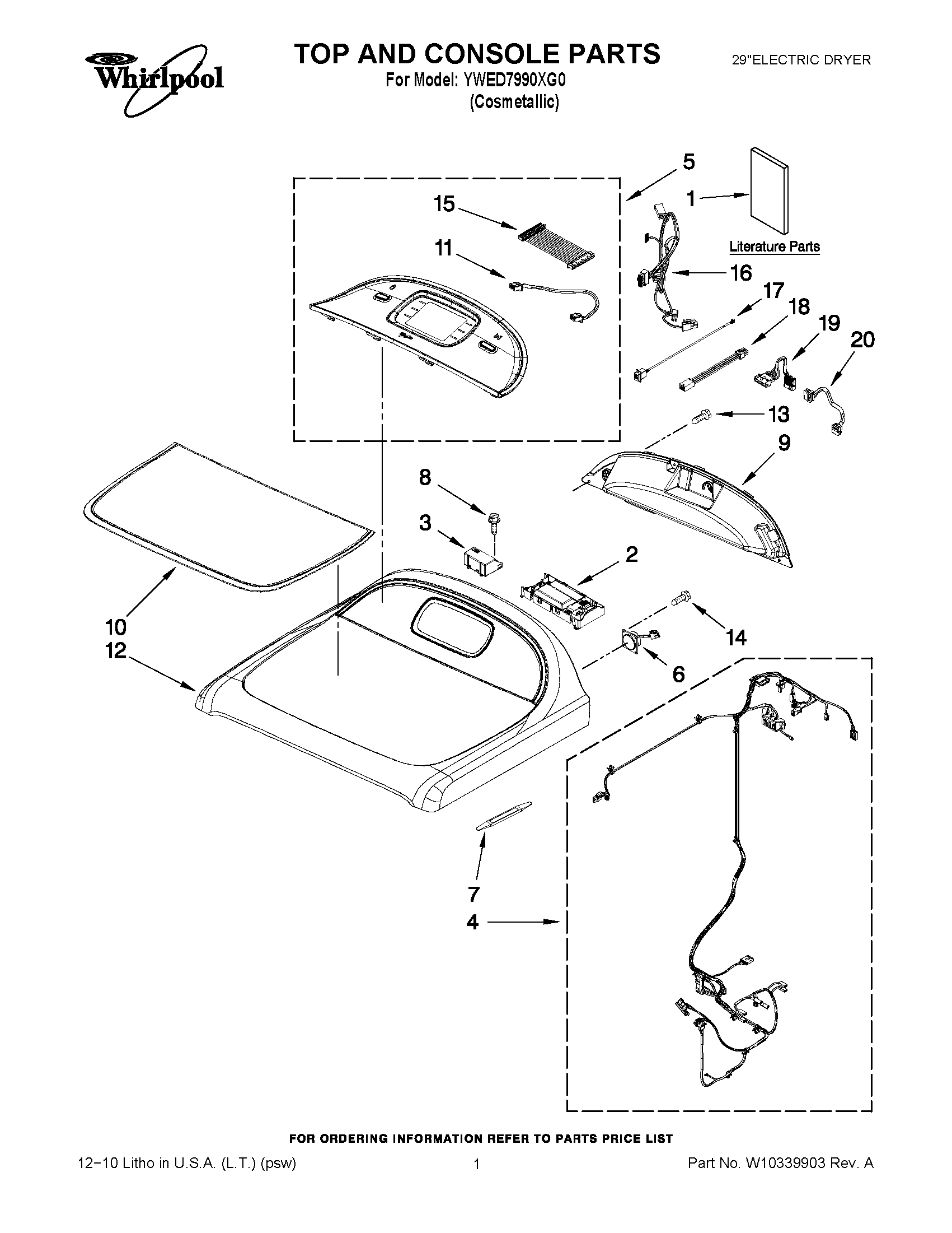 YWED7990XG0 01 – TOP AND CONSOLE PARTS