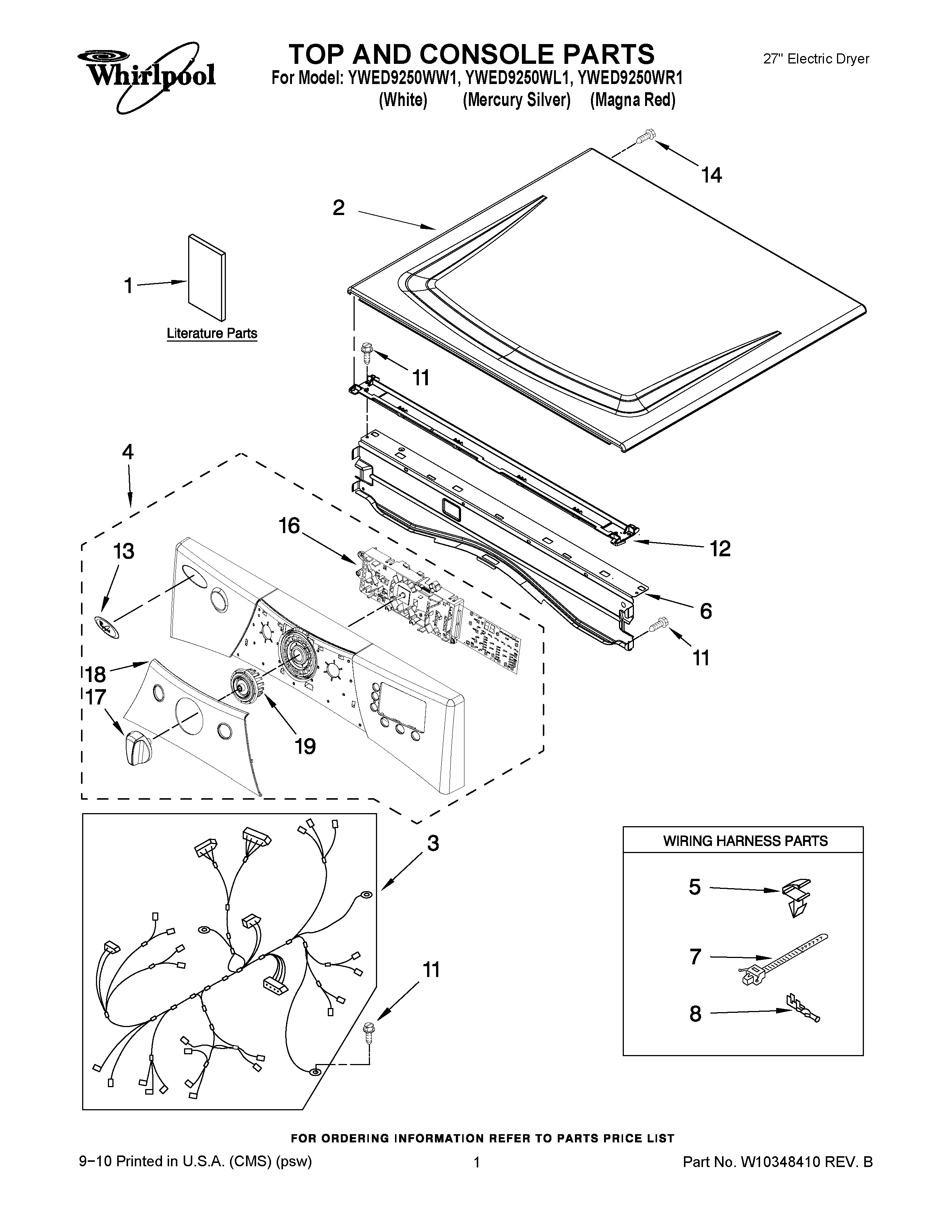 YWED9250WW1 01 – TOP AND CONSOLE PARTS