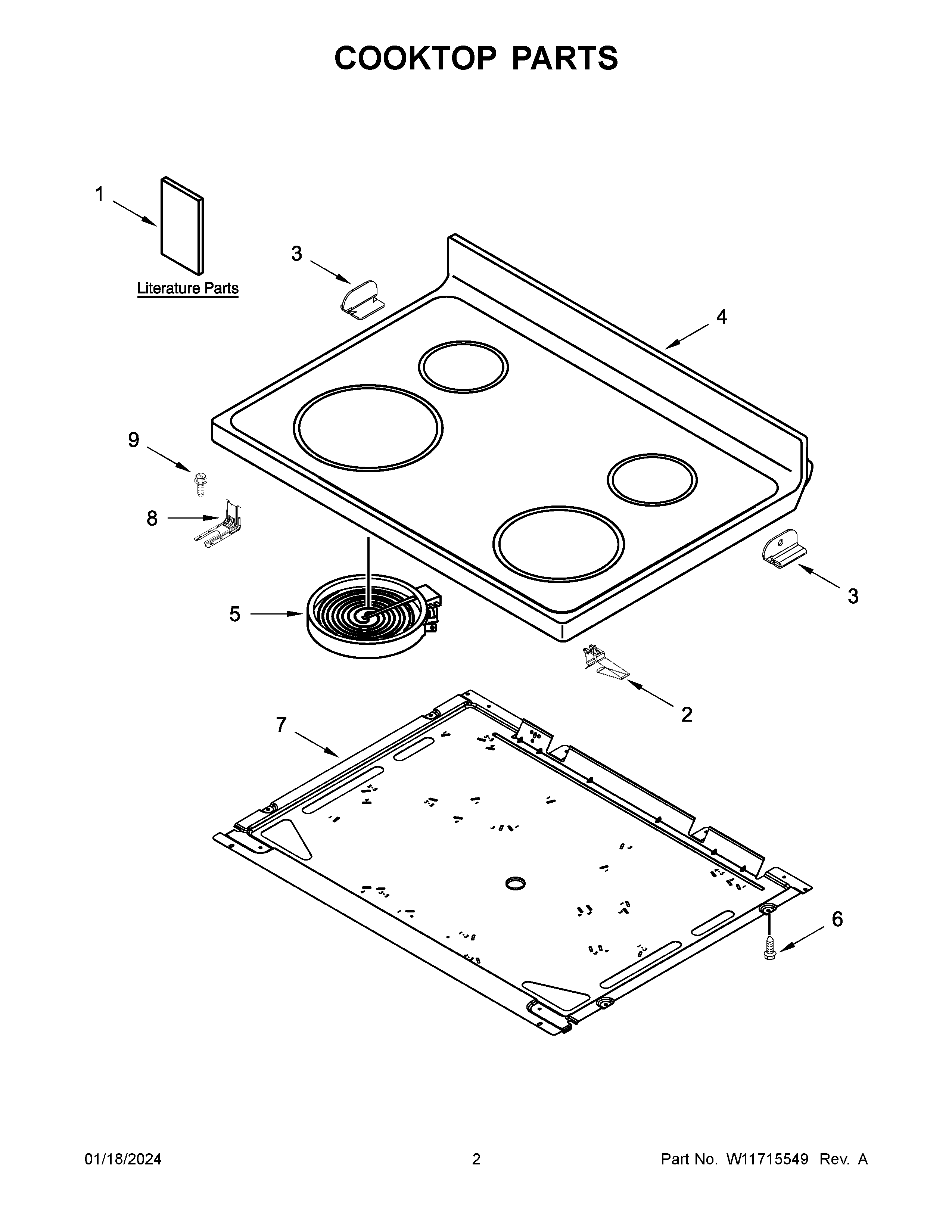 YWFE521S0HS5 02 – COOKTOP PARTSadmin2025-04-26T11:09:38+00:00YWFE521S0HS5 02 – COOKTOP PARTS ProductsPositionProductNIHARNESS, WIRE (MAIN)NIW11172528 Whirlpool Harness WireNIW11675846 Whirlpool Wire HarnessNIW11596058 Whirlpool Wire HarnessNI3400964 Whirlpool Oven ClipNIFOLLOWING PARTS NOT ILLUSTRATED1BTECH SHEET1AOWNER'S MANUAL1QUICK START GUIDE1CWIRING DIAGRAM2W11663556 Whirlpool Spring Assembly3W10607641 Whirlpool Clip3AW10607642 Whirlpool Clip4W10245805 Whirlpool Range Black Glass Cooktop5W11517959 Whirlpool Electric Range Radiant Surface Element5AELMNT-SURF5BW11047722 Whirlpool Radiant Surface Element6WP3196557 Whirlpool Screw7PAN8W11447673 Whirlpool Range Tip Anchor9SCREW, ANTI-TIP KIT