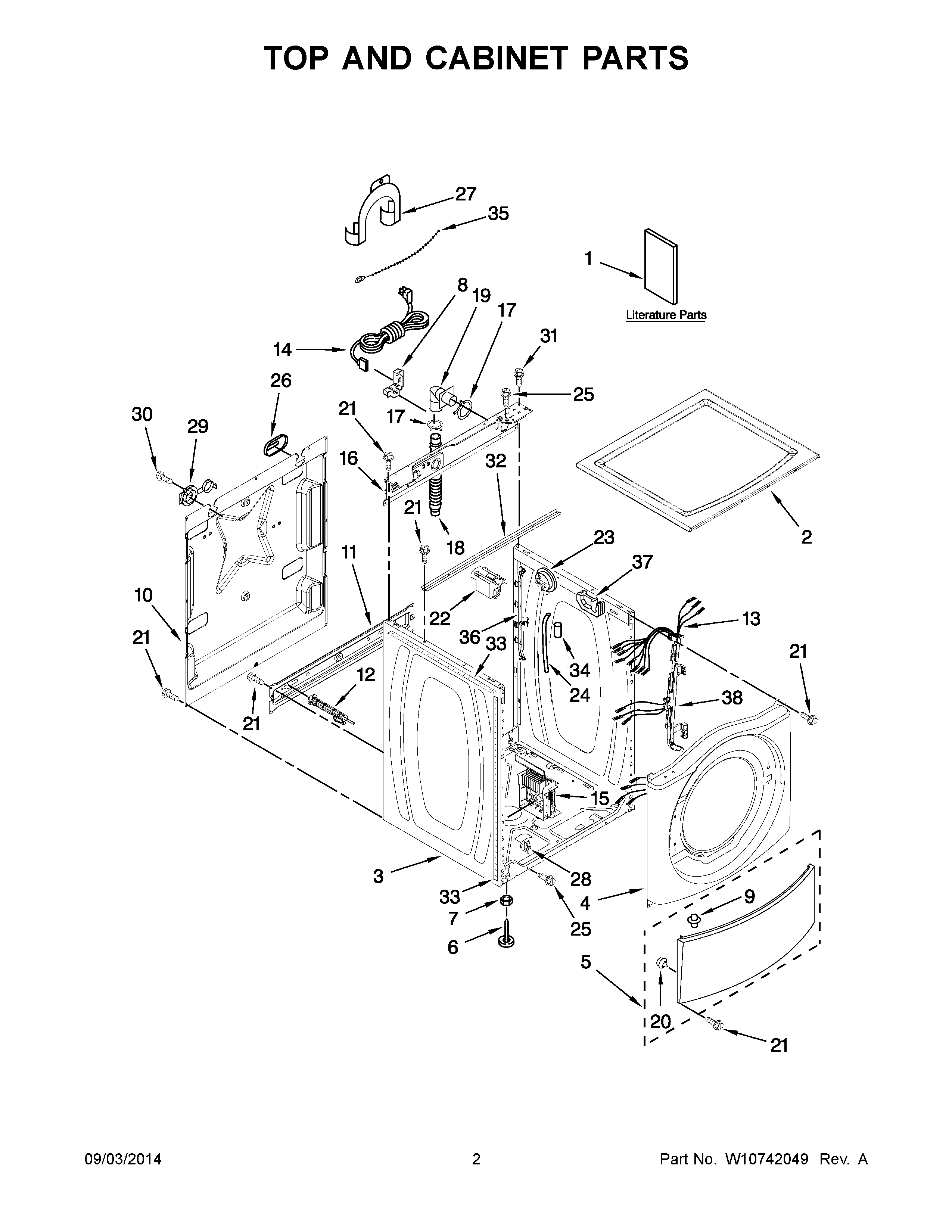 YWFW9050XW01 02 – TOP AND CABINET PARTS