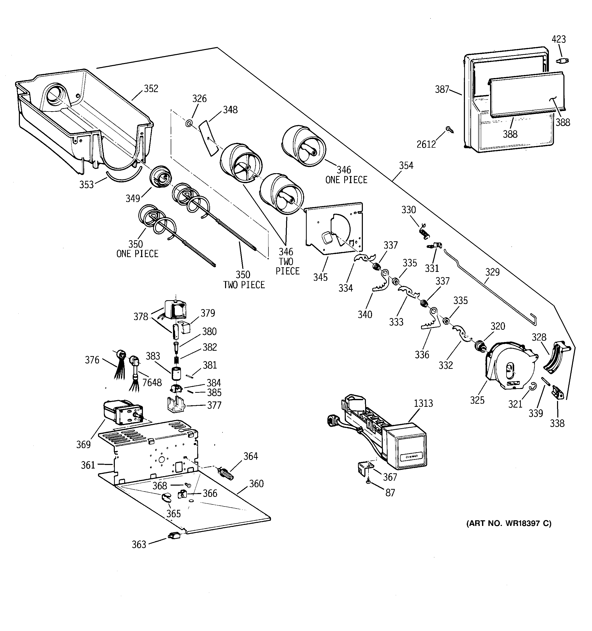 WR17X4312 GE Refrigerator Ice Maker Auger and Bucket Assembly