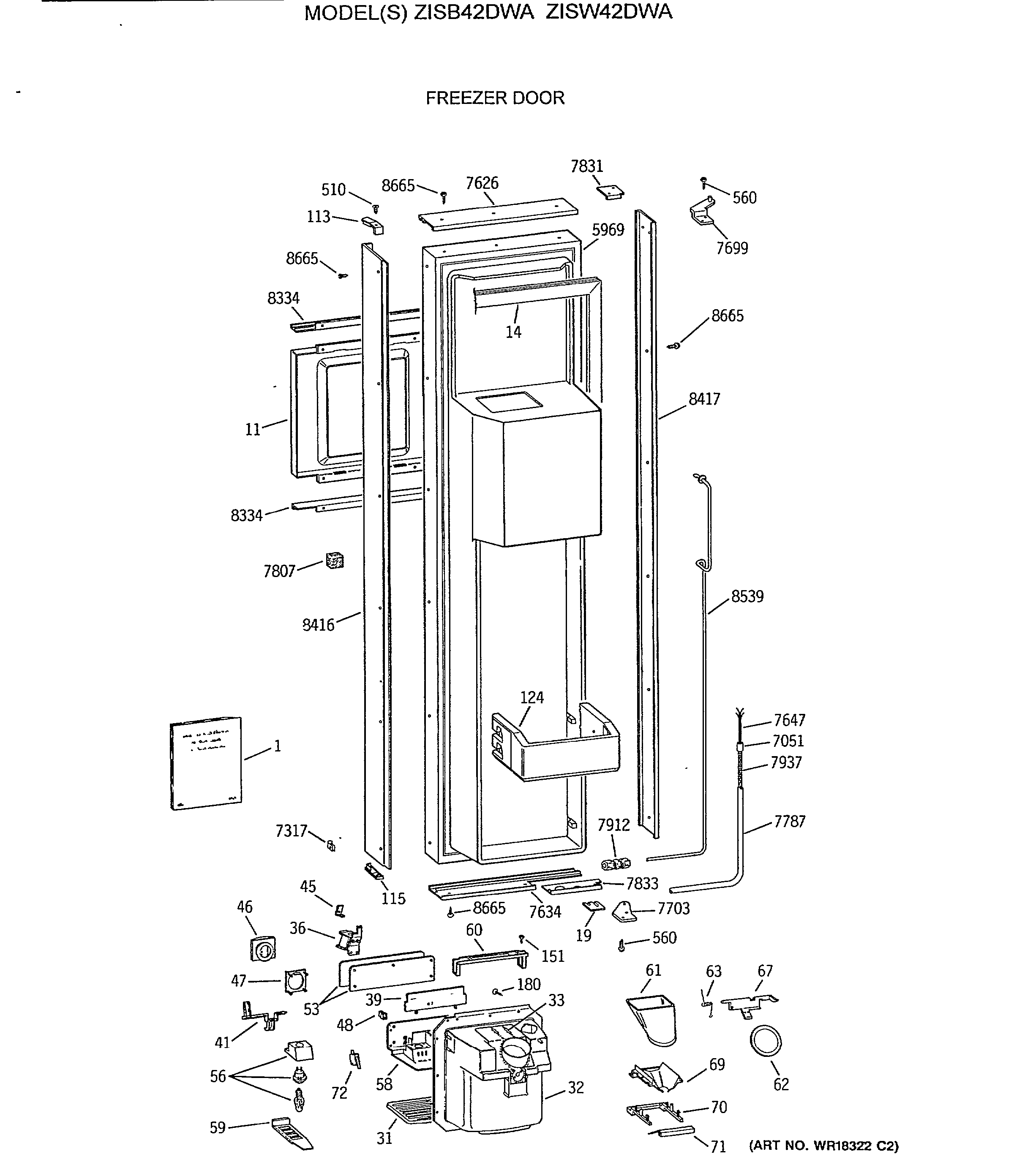 ZISB42DWA FREEZER DOOR
