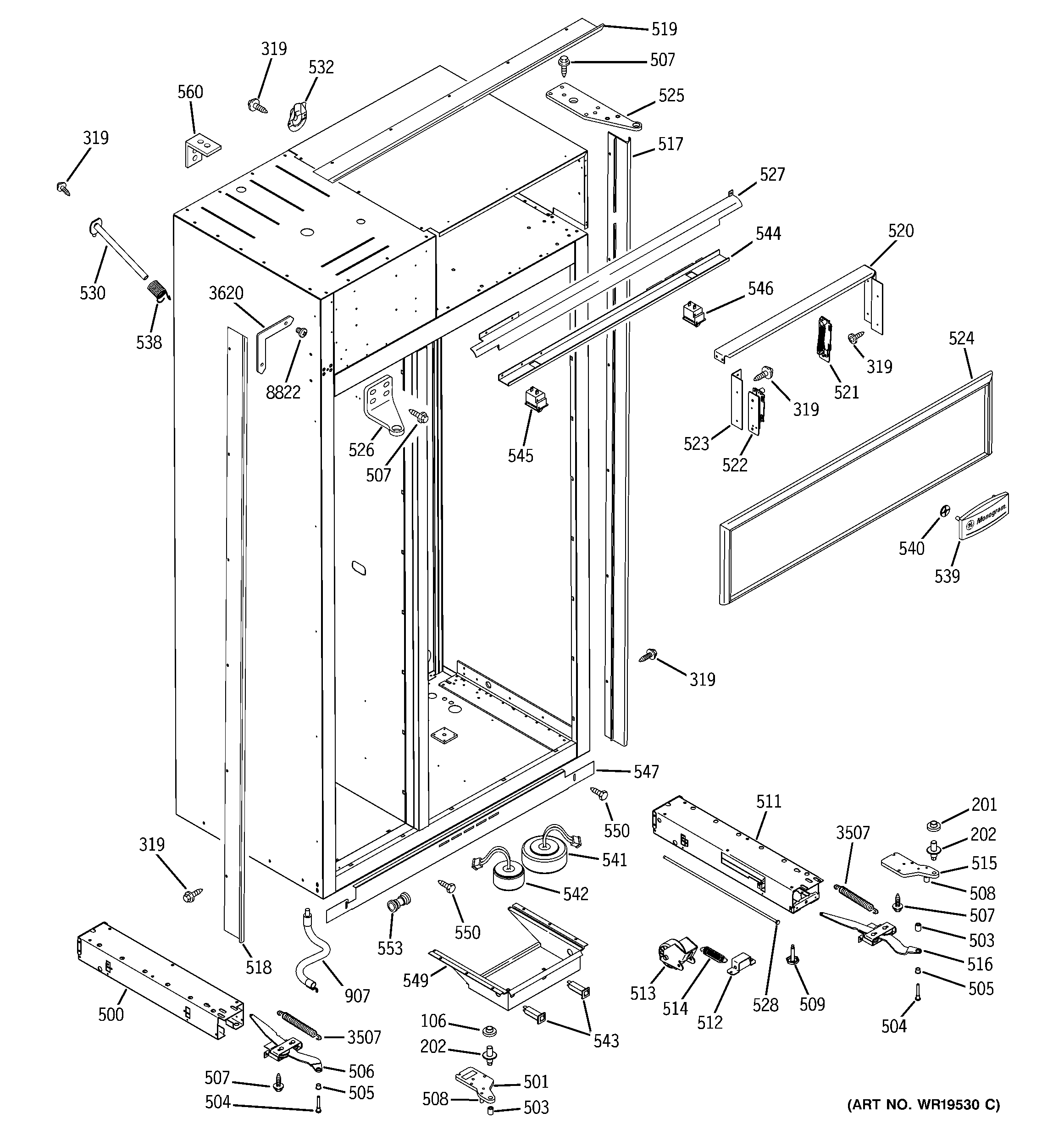 WR17X12831 GE Refrigerator Trim Case Right Hand Side